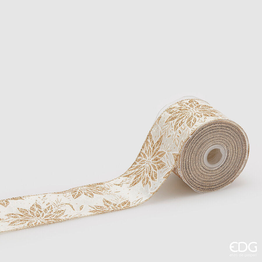 EDG Enzo De Gasperi Nastro Stella Natale H 6,5 Cm 10 Mt Avorio Oro