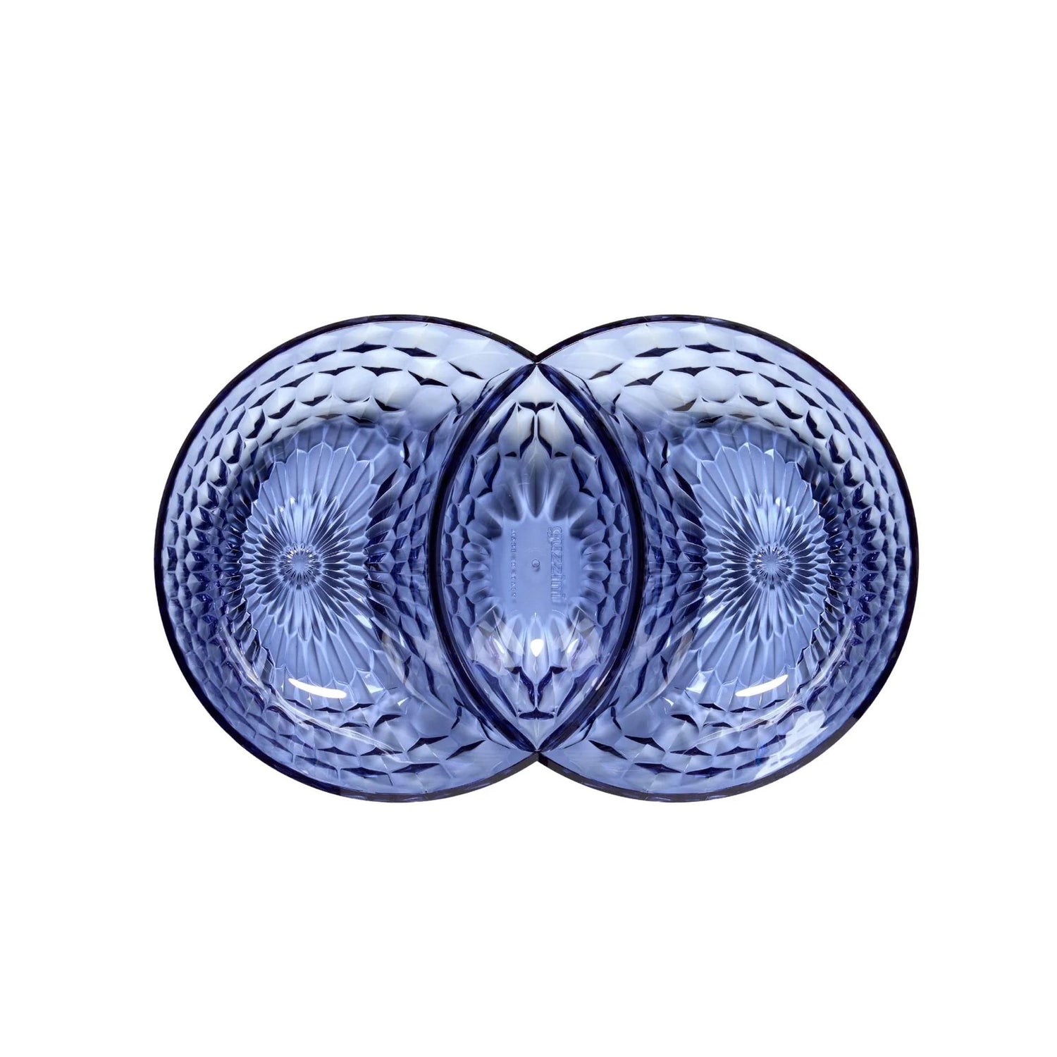 Caratterizzata da una raffinata forma a infinito, offre tre scomparti separati che permettono di presentare diverse preparazioni in modo ordinato e armonioso. La tonalità blu dona un tocco fresco e moderno, perfetto per una tavola curata nei dettagli.