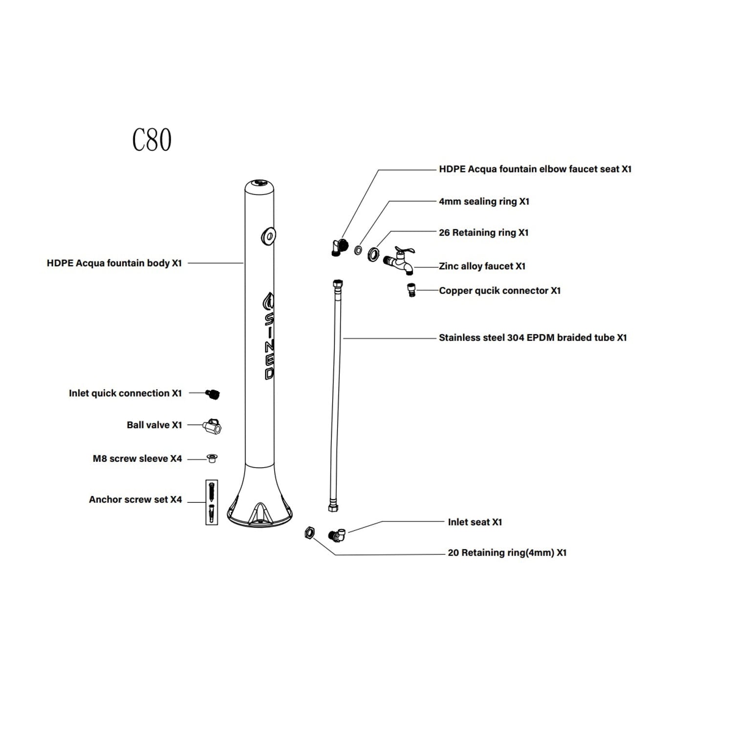 - Fontanella realizzata in HDPE (polietilene ad alta resistenza) resistente ai raggi UV, al calcare ed alla salsedine.